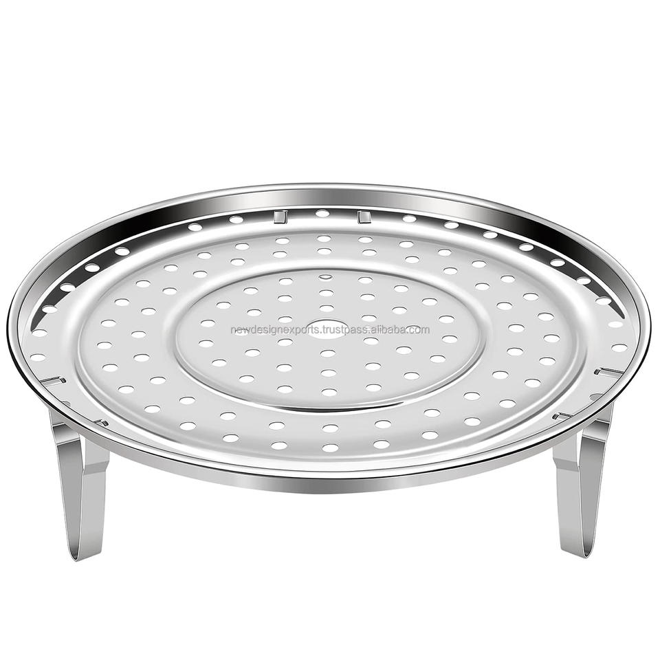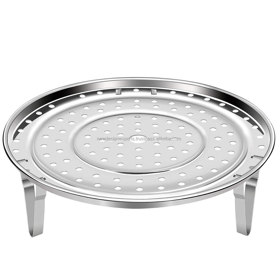 ชั้นวางนึ่งสแตนเลสแบบหนาสำหรับหม้ออัดแรงดัน พร้อมขาถอดได้ สำหรับหม้อตุ๋น ถาดนึ่ง และกระทะ