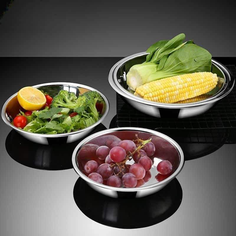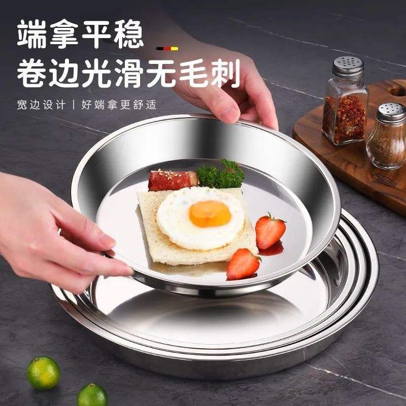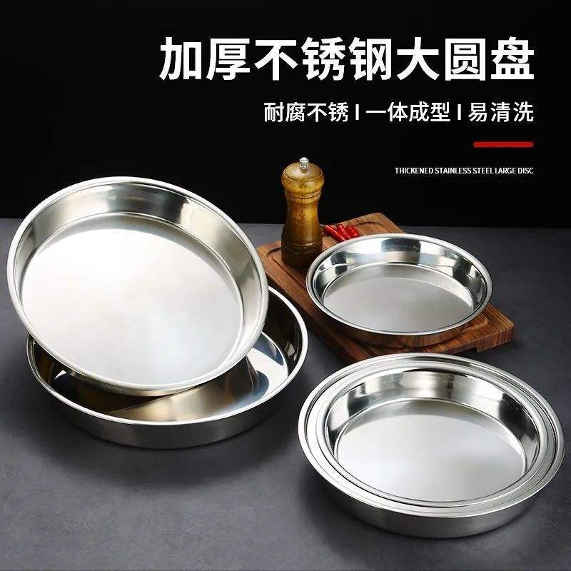 ถาดนึ่งสแตนเลสทรงกลมหนาขึ้น ลึกขึ้น เกรดอาหาร สำหรับเสิร์ฟอาหารในครัว อุปกรณ์ทำเค้ก