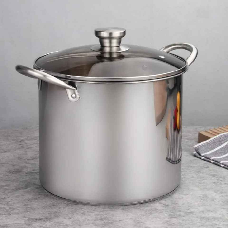 หม้อสต็อกสแตนเลสพร้อมฝาแก้ว ขนาดใหญ่ ใช้กับเตาแม่เหล็กไฟฟ้าได้ หม้อตุ๋นซุป หม้อหุงต้ม ทนทาน อุปกรณ์ครัว