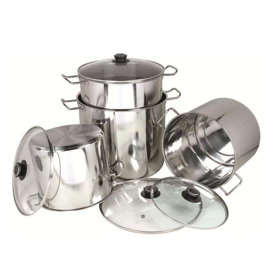 หม้อสต็อกสแตนเลสพร้อมฝาปิด ชุดอุปกรณ์สำหรับใช้ในครัวเรือน วัสดุโลหะทนทาน เป็นมิตรกับสิ่งแวดล้อม สีและโลโก้ปรับแต่งได้