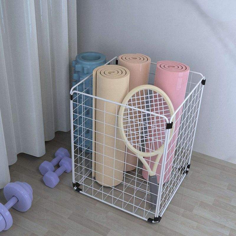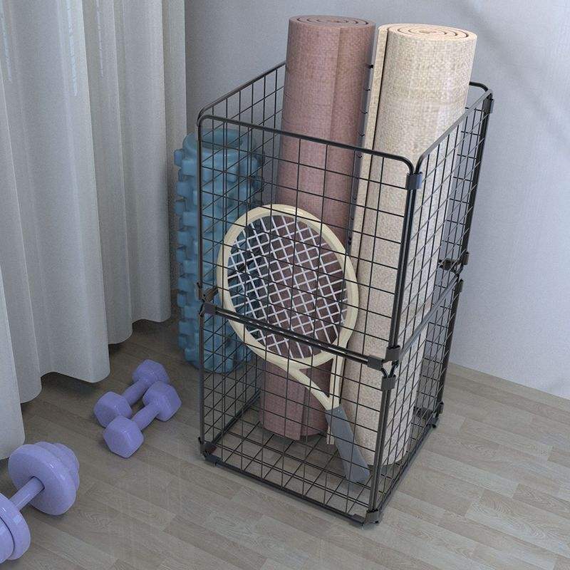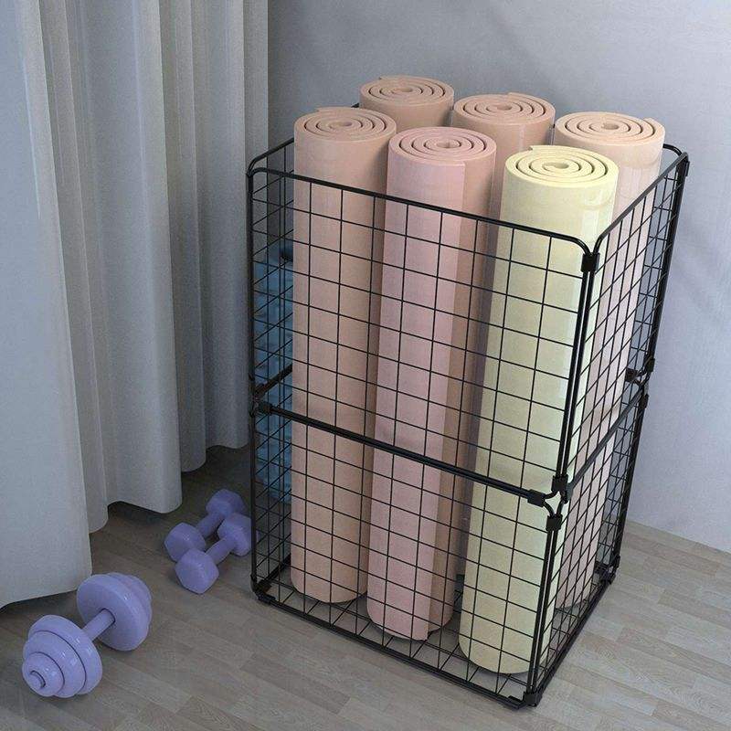 ตะกร้าเก็บของสแตนเลสทรงสี่เหลี่ยมมีหูจับ ประหยัดพื้นที่ สำหรับเสื่อโยคะ อุปกรณ์ออกกำลังกาย โฟมโรลเลอร์ จัดระเบียบอย่างเป็นระเบียบ