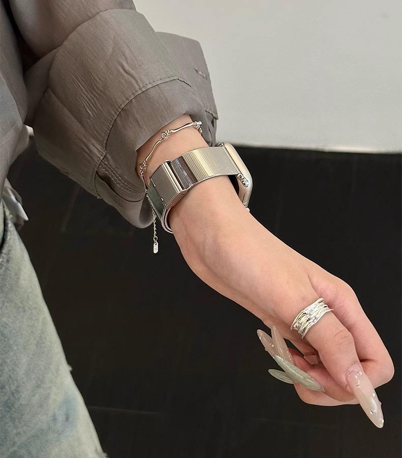 สายสแตนเลสสำหรับนาฬิกาแอปเปิ้ลอัลตร้า2 49มม. 42 46มม. 41 45 40 44มม. สร้อยข้อมือผู้หญิงสำหรับ iWatch Series 11 10 9 8 7 SE 6