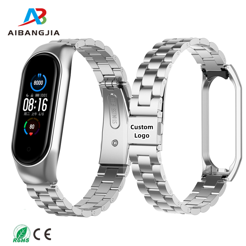 สายสแตนเลสสำหรับ Xiaomi band 6 5 4สายรัดข้อมือโลหะสำหรับ Xiaomi Smart band 10