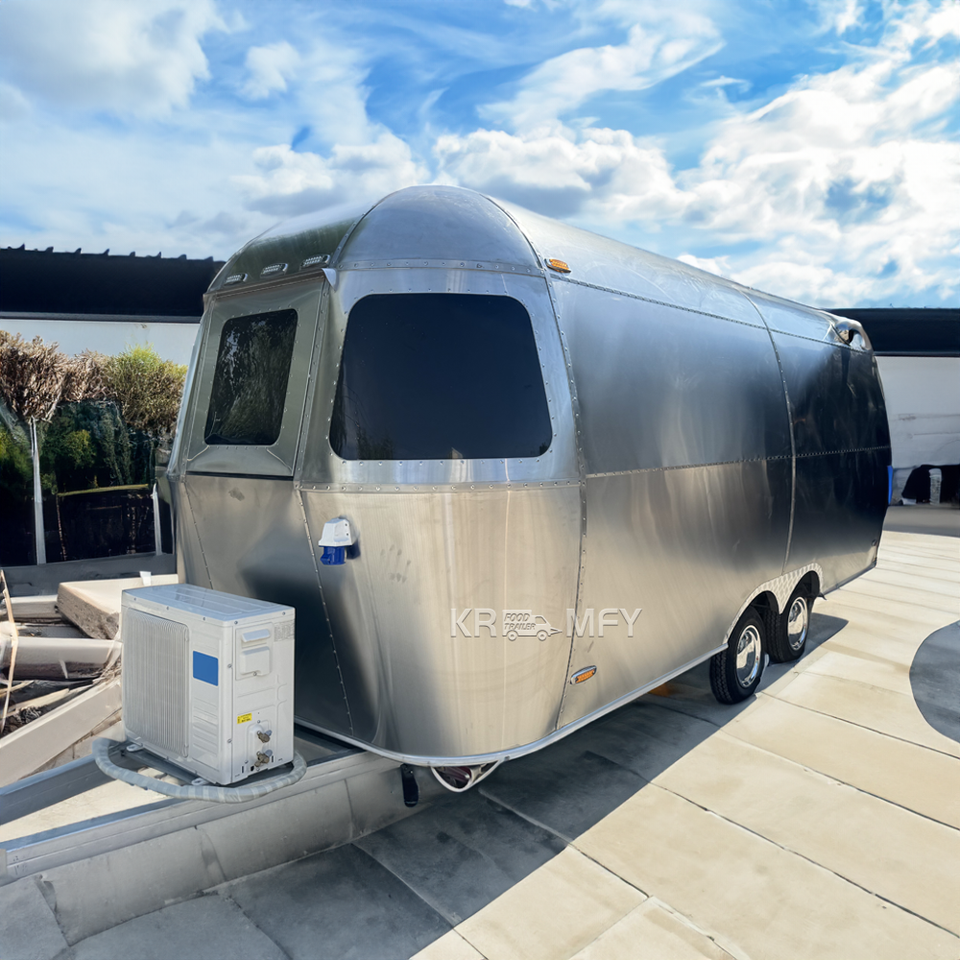 รถพ่วงขายอาหารเคลื่อนที่สแตนเลสสตีลแบบยุโรป สำหรับขายกาแฟและไอศกรีม