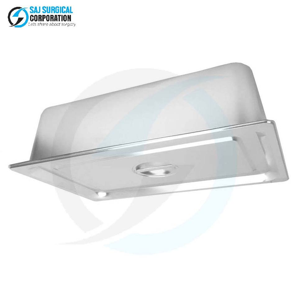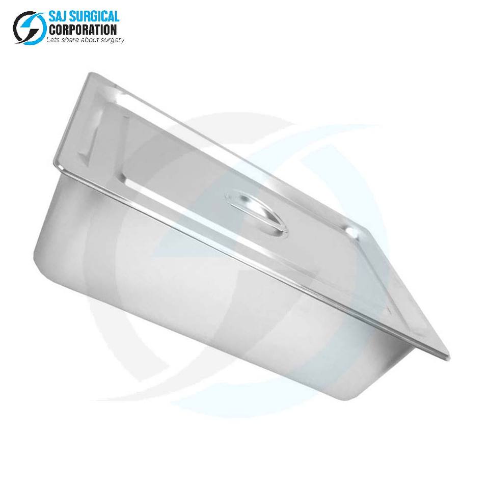 ถาดใส่เครื่องมือผ่าตัดสแตนเลสแบบมีฝาปิดแบบมีบานพับ ใช้งานด้วยมือ สำหรับการผ่าตัดทั่วไป - ทนทาน ใช้ซ้ำได้ ปลอดเชื้อ