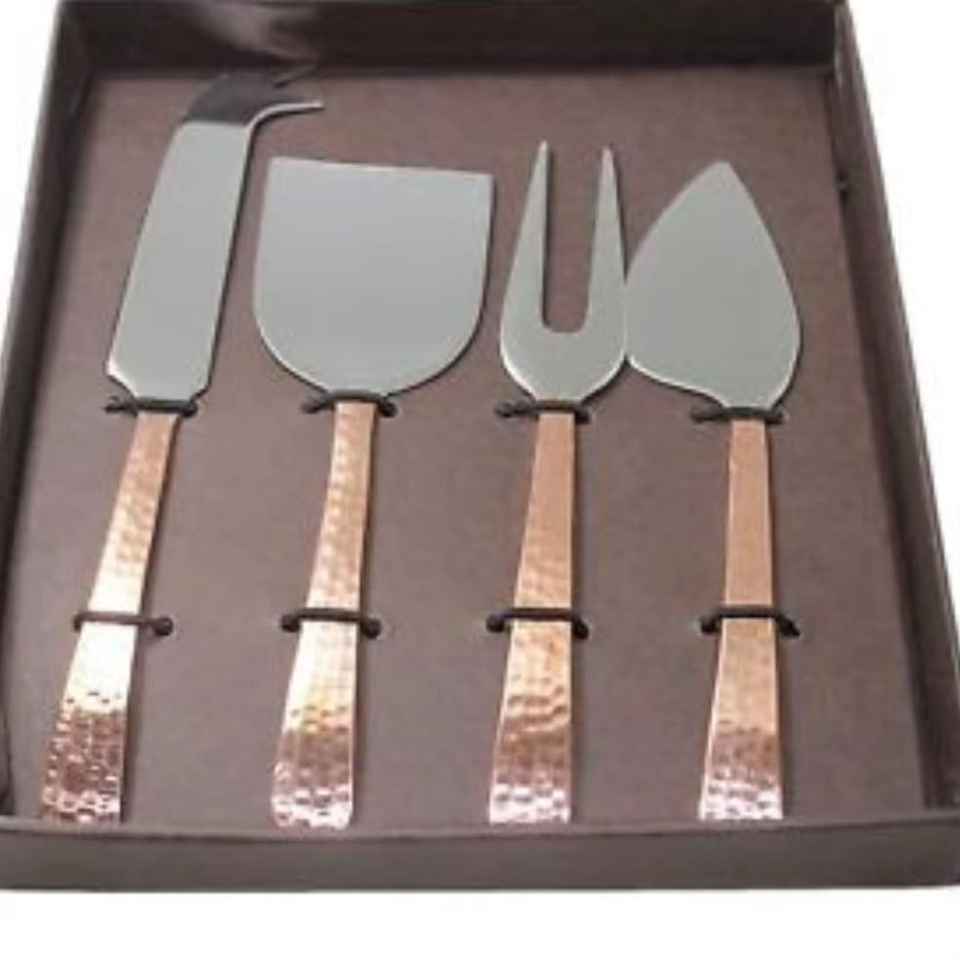 ชุดมีดชีสสแตนเลสแบบยั่งยืน ด้ามทองแดงลายตอก ทันสมัย ชุดอุปกรณ์ตัดชีส 4 ชิ้น สำหรับเขียงเสิร์ฟในครัว