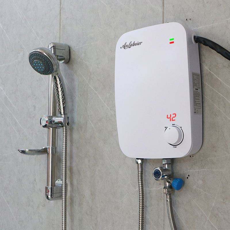 เครื่องทำน้ำอุ่นเหล็กกล้าไร้สนิมไม่มีถัง110V-380V LED แสดงผลอุณหภูมิพลาสติกสำหรับใช้ในครัวเรือน