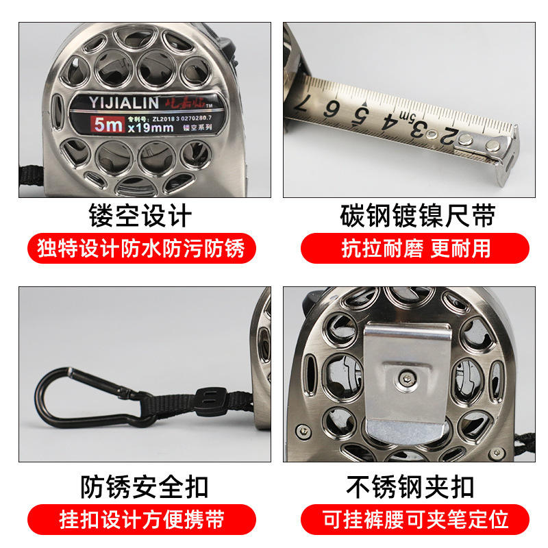 เทปวัดสแตนเลส 5 ม. แบบยืดหดอัตโนมัติ กันน้ำ กันสนิม เครื่องมือวัดแบบเมตริก