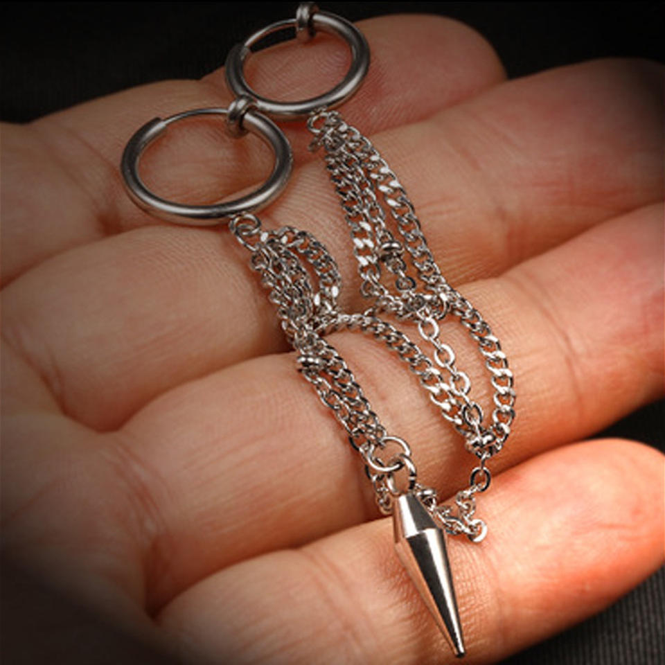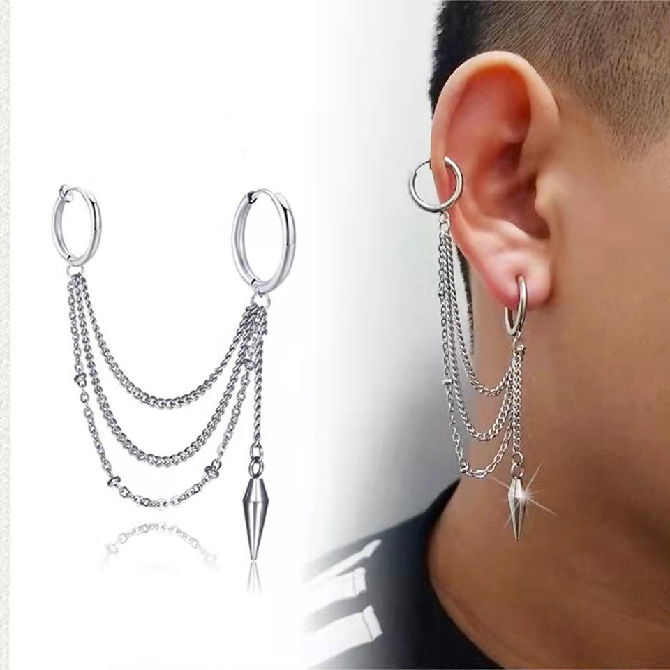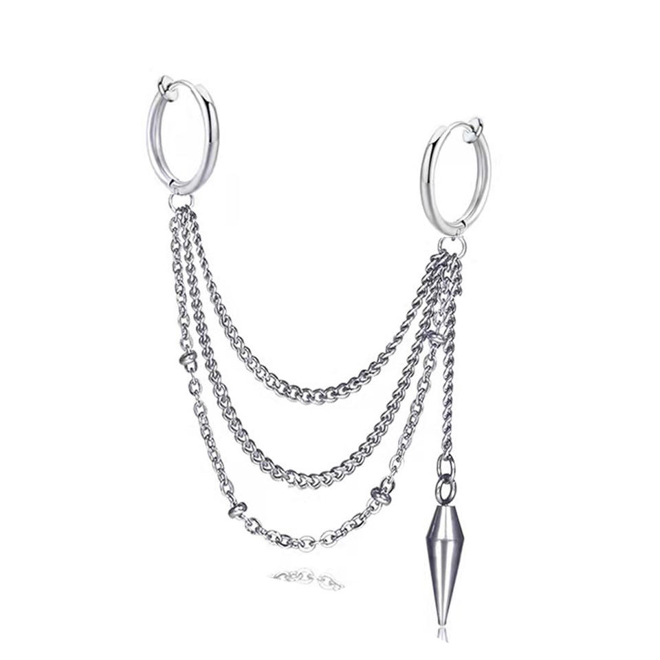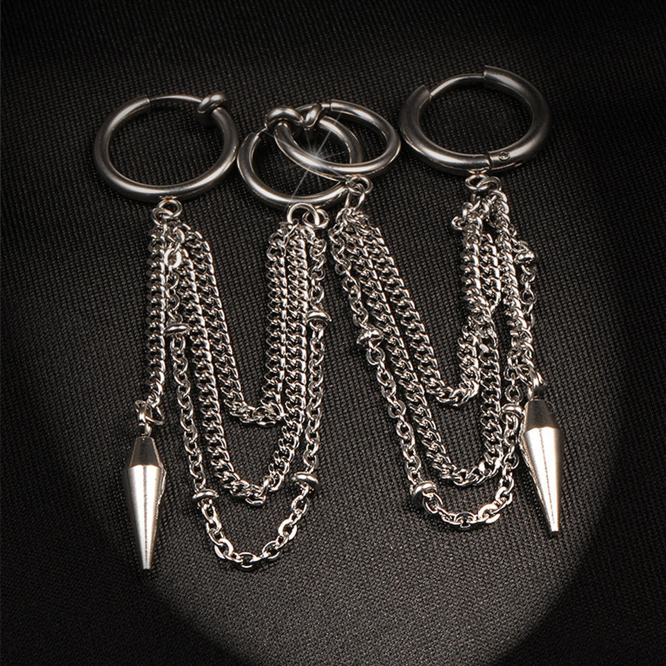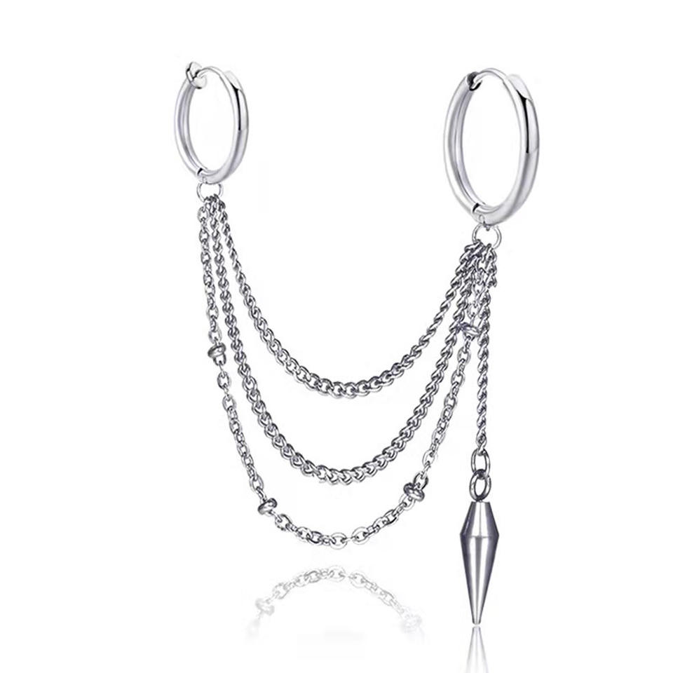 ต่างหูพู่สแตนเลสพร้อมโซ่หลายชั้นและจี้รูปกรวยสำหรับเครื่องประดับแฟชั่น