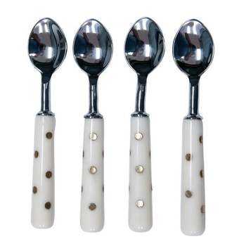 ชุดช้อนส้อมด้ามเรซิ่นสีขาว แต่งลายจุดสีทอง เหมาะสำหรับบ้านสมัยใหม่ ใช้ในชีวิตประจำวัน งานเลี้ยง งานอีเว้นท์ และตกแต่งโต๊ะอาหาร