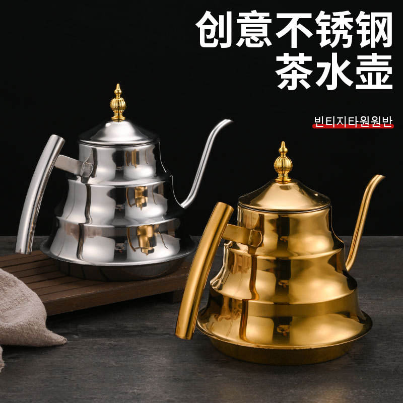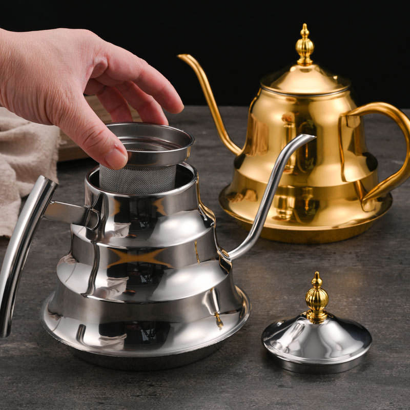 กาน้ำชาสแตนเลสพร้อมตัวกรอง ปากแคบ ความจุขนาดใหญ่ สำหรับร้านอาหารและโรงแรม
