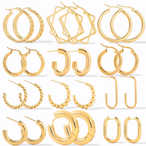 ต่างหูห่วงหนาสแตนเลสของผู้หญิงรูปทรงเรขาคณิตชุบด้วยทองและมุกเครื่องประดับที่สง่างาม