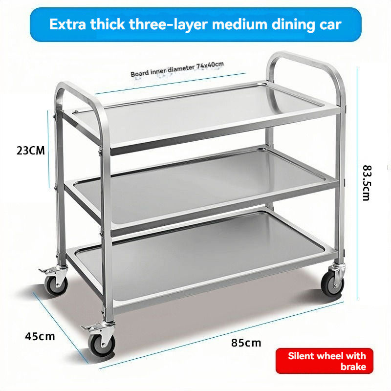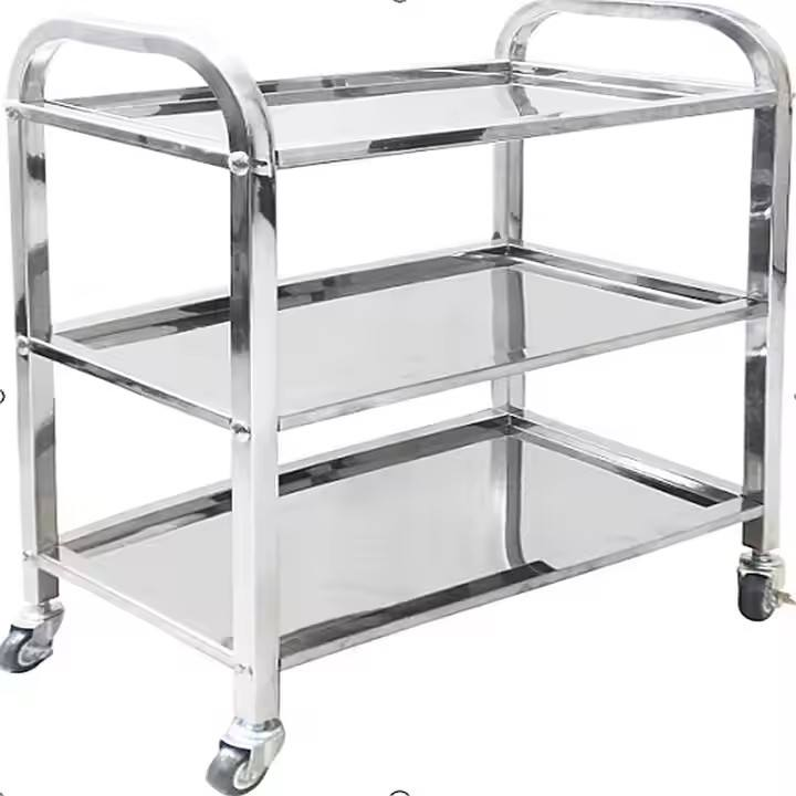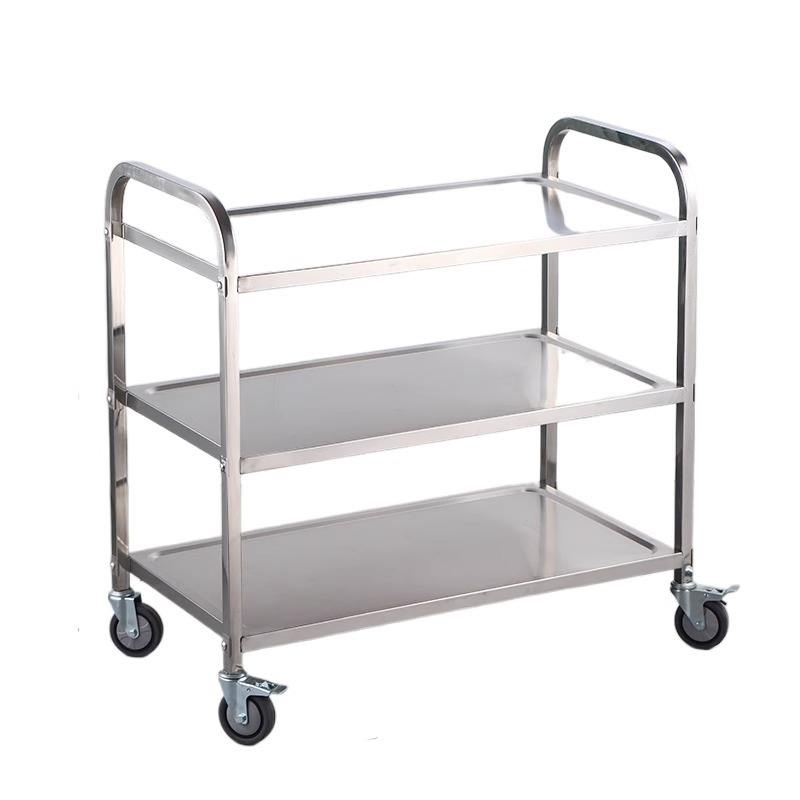 รถเข็นอาหารเคลื่อนที่สามชั้นสแตนเลสสำหรับโรงแรมร้านอาหารใช้ในเชิงพาณิชย์สำหรับการเสิร์ฟและจัดการภาชนะบนโต๊ะอาหาร