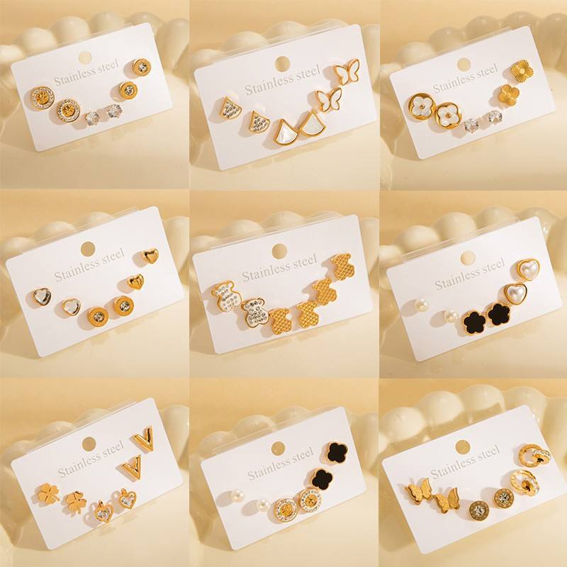ต่างหูห่วงสแตนเลสและไทเทเนียมประดับหินธรรมชาติ ต่างหูแบบติดหูเล็ก สีทอง เครื่องประดับหู ดีไซน์เฉพาะ ผลิตในจีน สำหรับผู้หญิงระดับไฮเอนด์