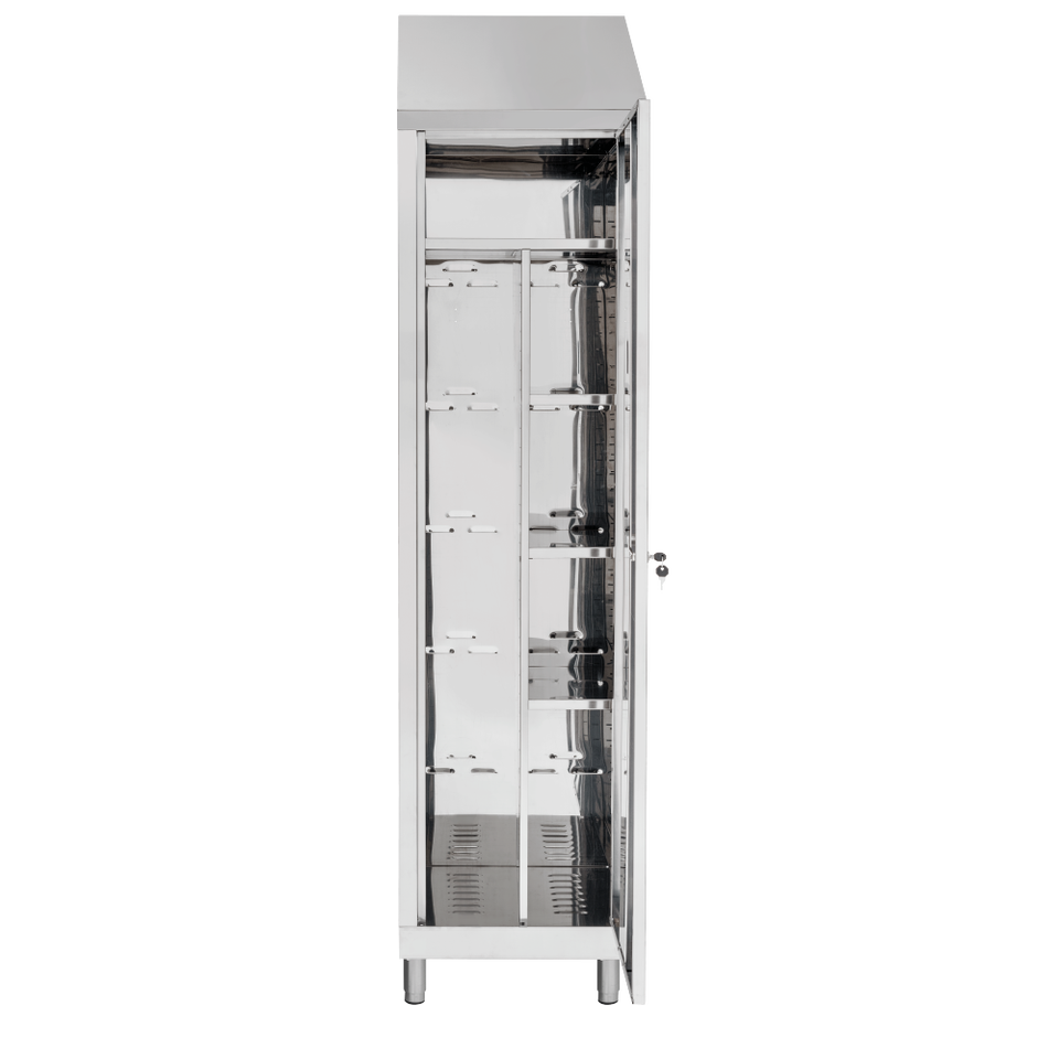 Stainless steel broom cabinet with 1 door and internal dividerHandle