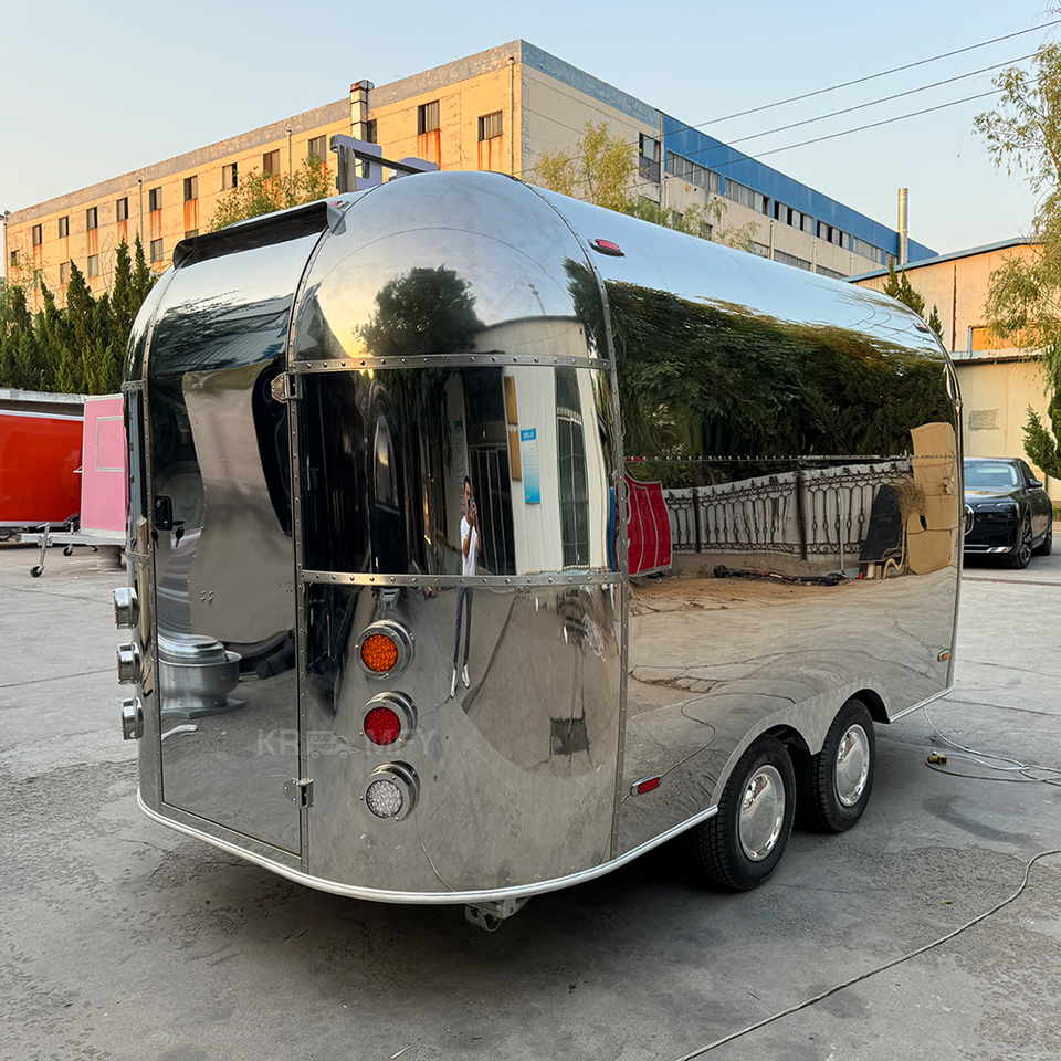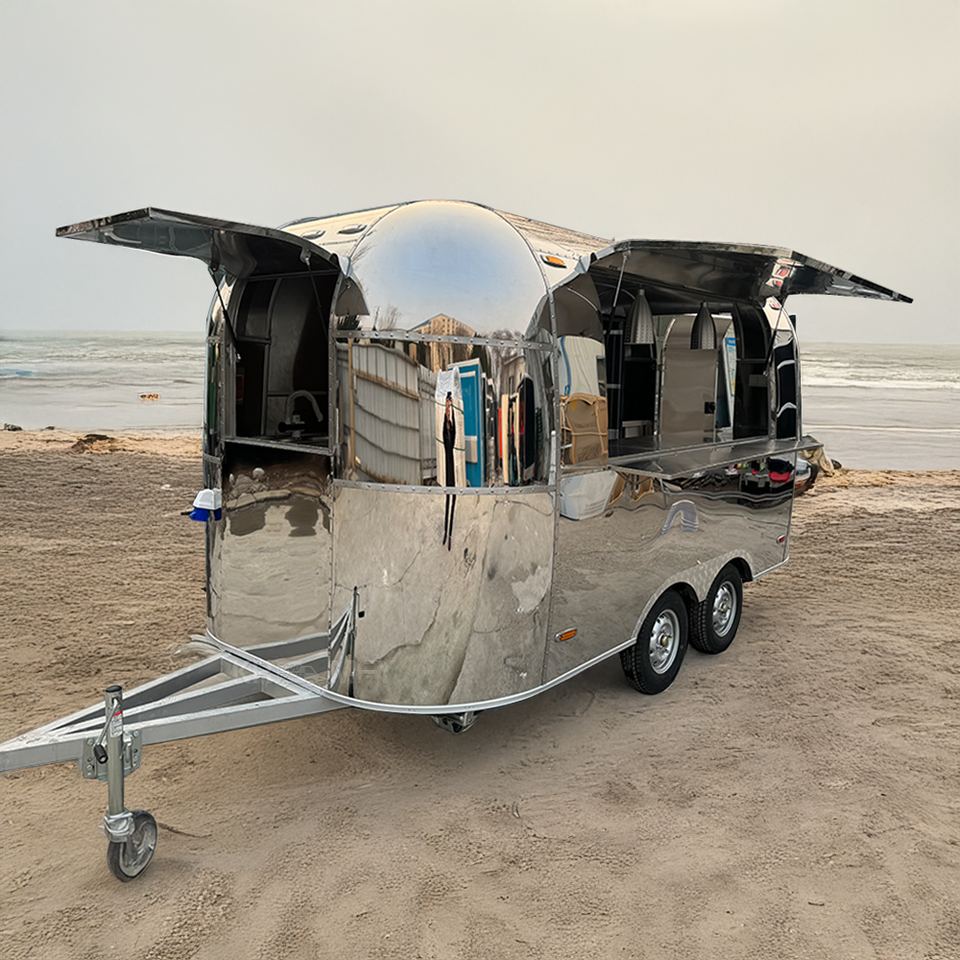 รถพ่วงขายอาหารสแตนเลสคุณภาพสูง สำหรับขายขนมขบเคี้ยว ลูกอม มันฝรั่งทอด ทนทานต่อการเกิดสนิม ใช้งานกลางแจ้งได้