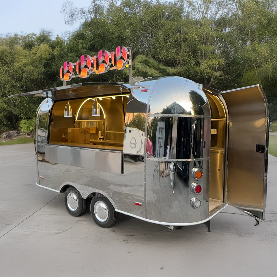 รถพ่วงขายอาหารสแตนเลสสำหรับจัดเลี้ยงอาหารว่าง ทนทานต่อการเกิดสนิม ใช้งานกลางแจ้งได้