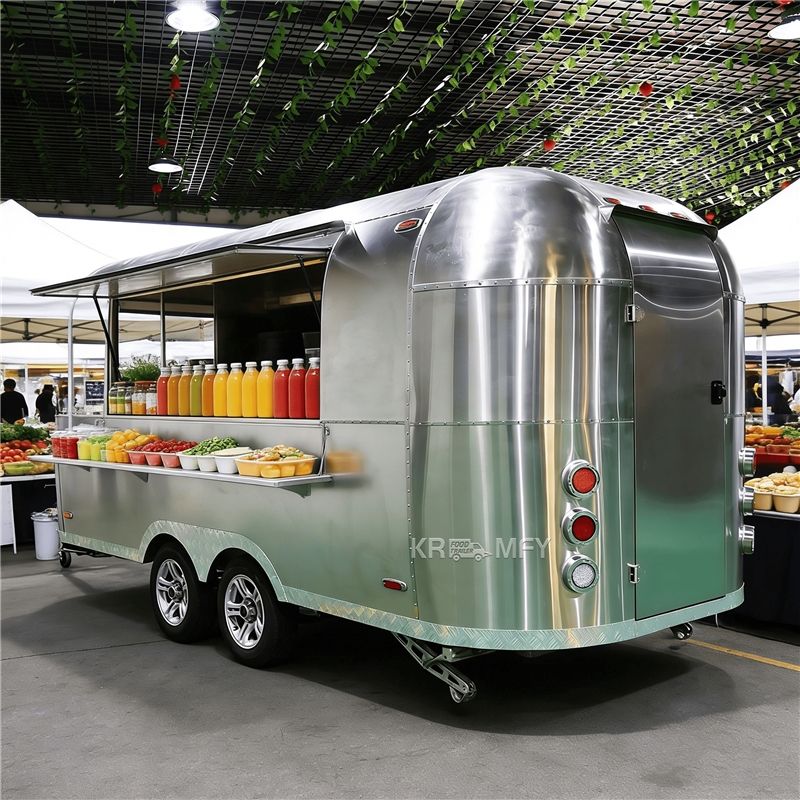 รถพ่วงขายอาหารเคลื่อนที่สแตนเลสพร้อมครัวครบชุดสำหรับขายขนมขบเคี้ยว ลูกอม มันฝรั่งทอด - ร้านอาหารกลางแจ้ง รถขายกาแฟ (สีสนิม)