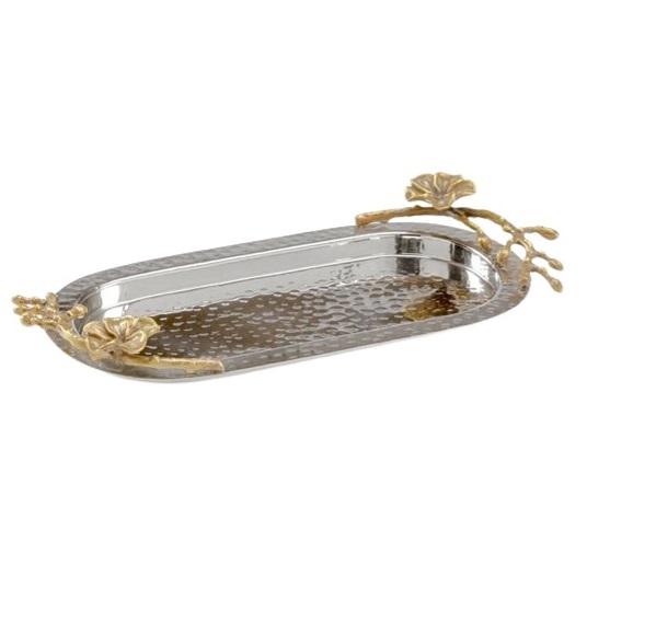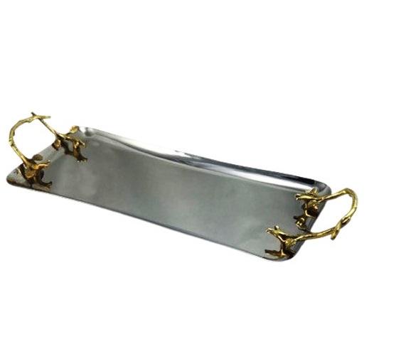 ถาดเสิร์ฟสแตนเลสสำหรับบ้านและโรงแรมถาดเสิร์ฟสีเงินมันวาว