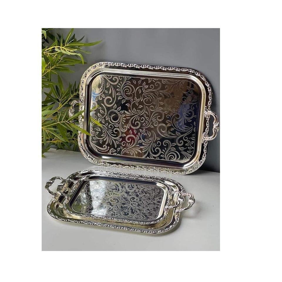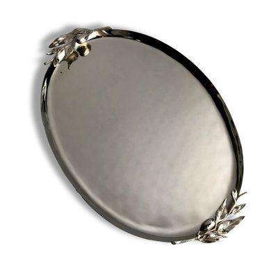 ถาดสแตนเลส ถาดเสิร์ฟโลหะ ถาดอาหารทรงกลม ถาดสแตนเลสแบบแบนตื้น