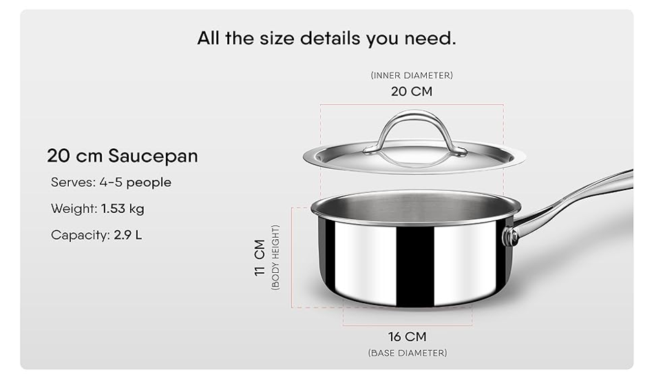 หม้อซอสสเตนเลสสตีลแบบสามชั้น 2.9 ลิตร | หม้อต้มนมพร้อมฝาปิด ใช้ได้กับเตาแก๊สและเตาแม่เหล็กไฟฟ้า