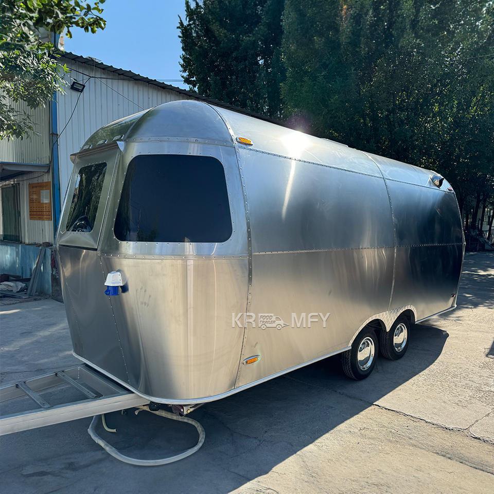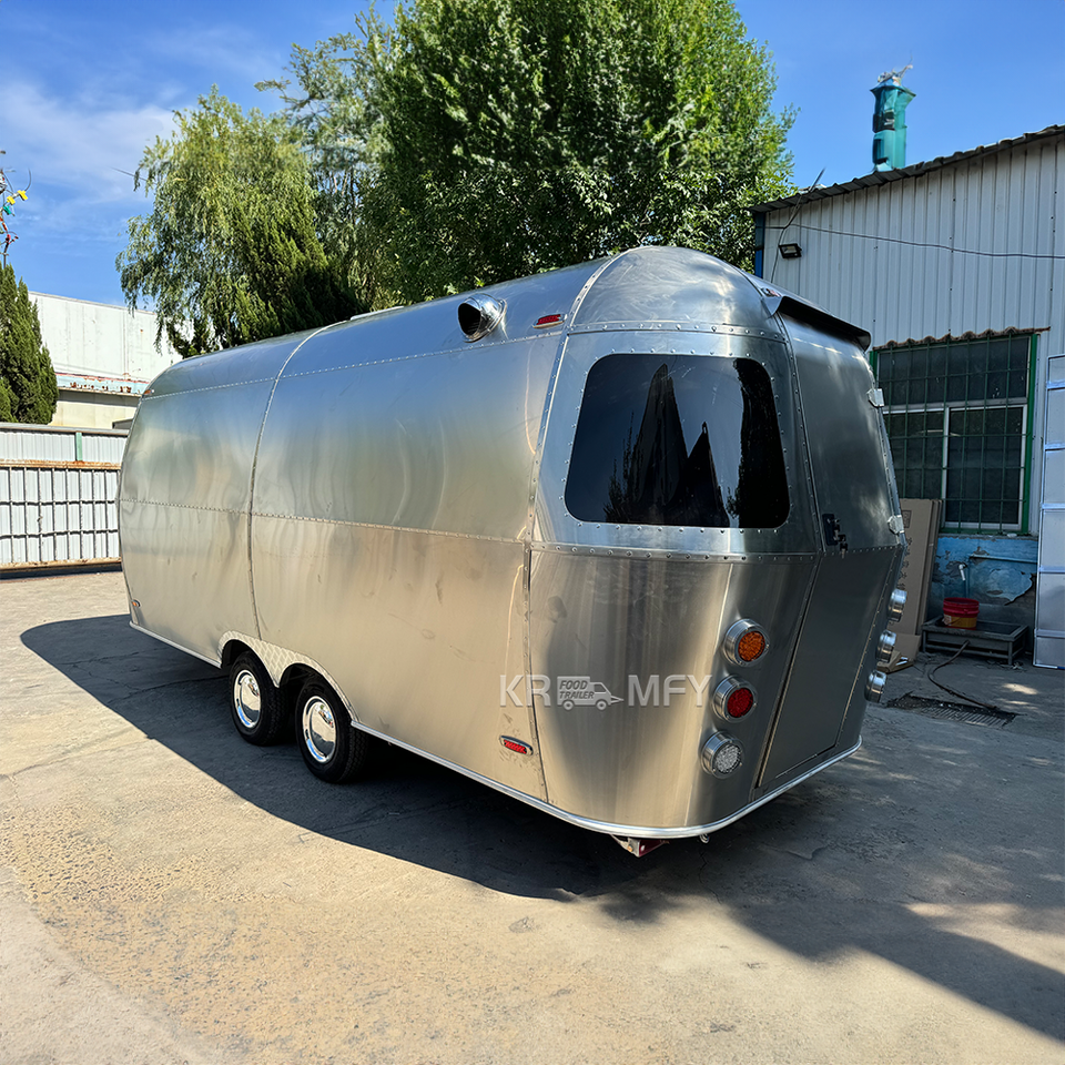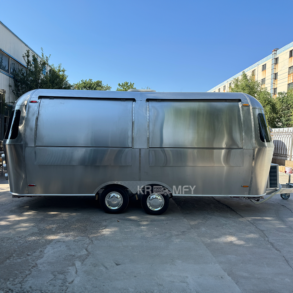 รถพ่วงสแตนเลสสำหรับขายพิซซ่าเคลื่อนที่กลางแจ้ง รถขายอาหารเคลื่อนที่สำหรับร้านอาหาร ฟาร์ม ร้านค้า พร้อมครัวครบชุด