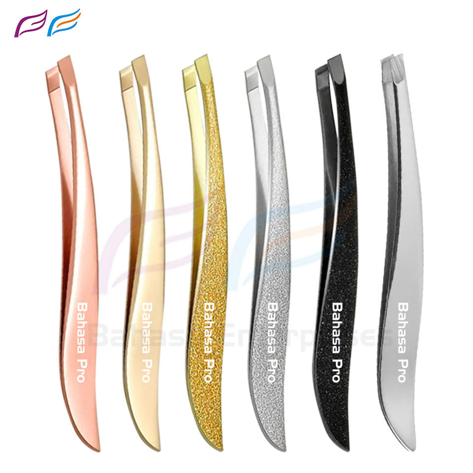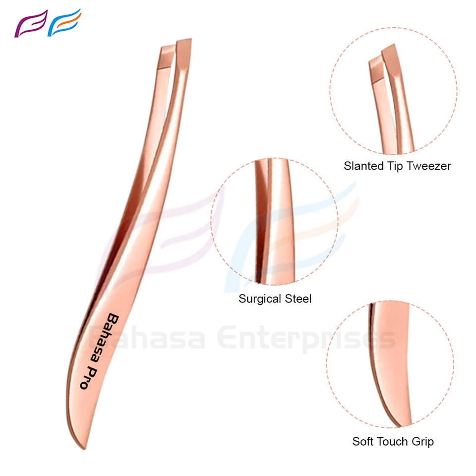 ชุดแหนบถอนคิ้วปลายเอียงสีโรสโกลด์ฉลากตามต้องการชุดสแตนเลสสำหรับกำจัดขนบนใบหน้าของผู้หญิง