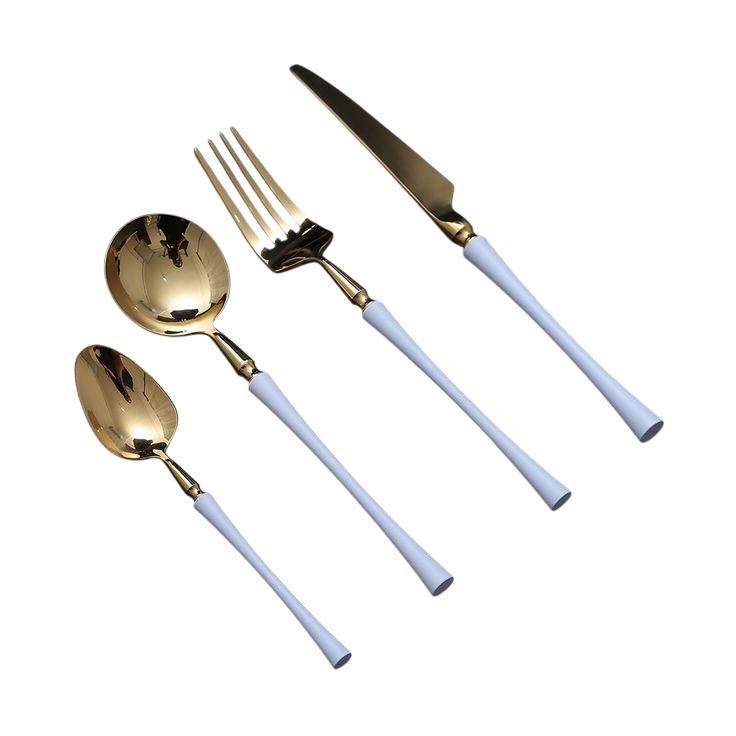 ชุดช้อนส้อมมีดด้ามสีน้ำเงินสุดพิเศษทำจากเหล็กช้อนส้อมมีดแบบคลาสสิกชุดเครื่องเงิน