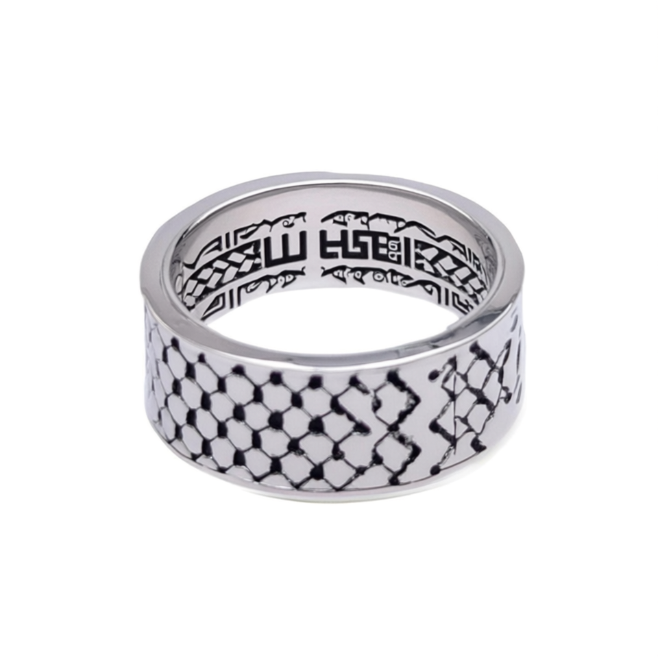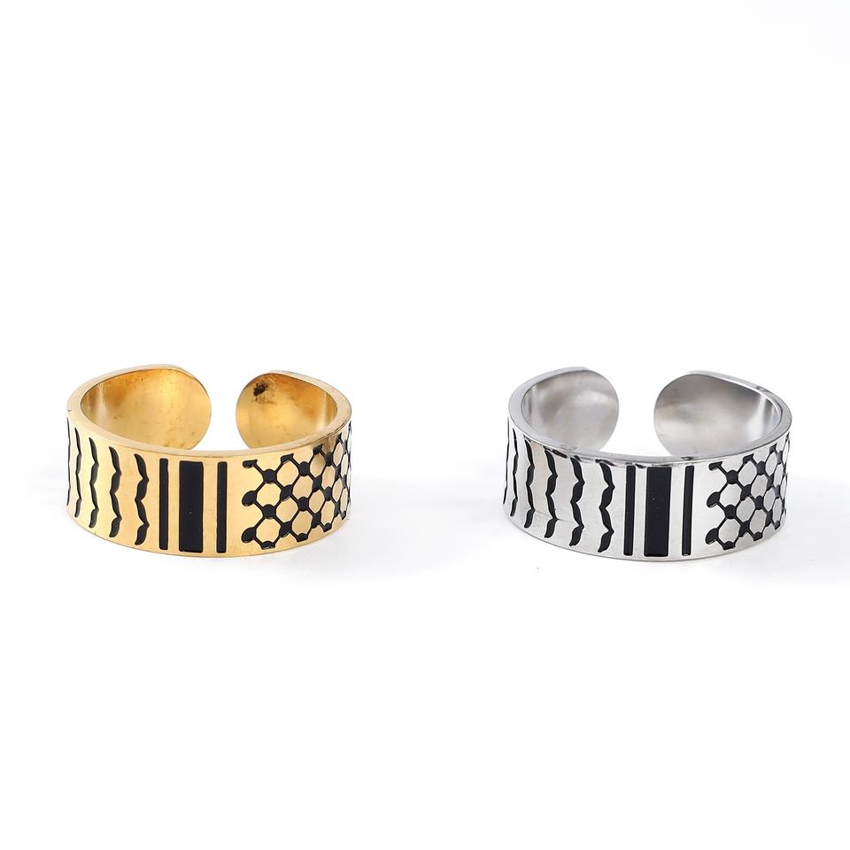 แหวนสแตนเลสสตีลลายผ้าคูฟียะห์แบบปาเลสไตน์สำหรับทุกเพศ ของขวัญเครื่องประดับอาหรับ แฟชั่นสำหรับใส่ทุกวัน