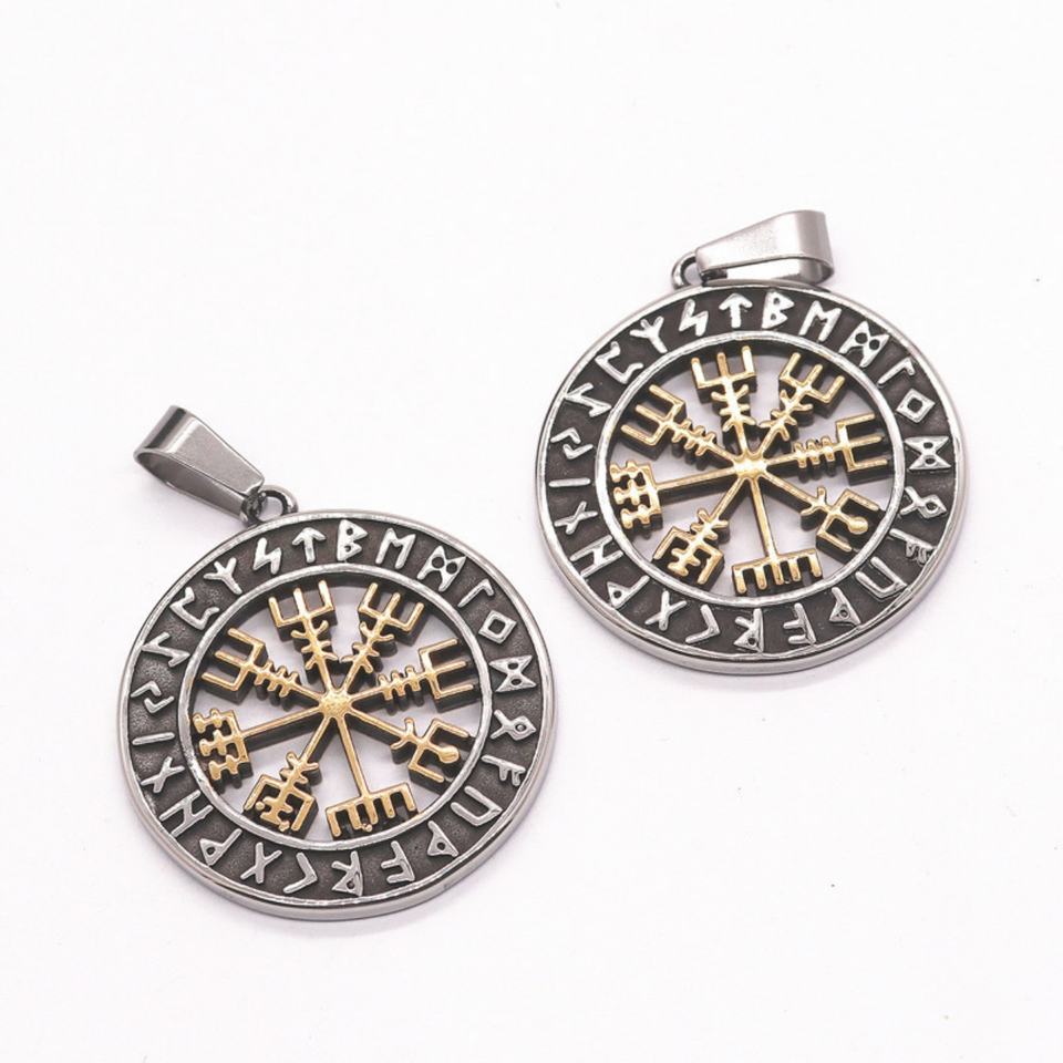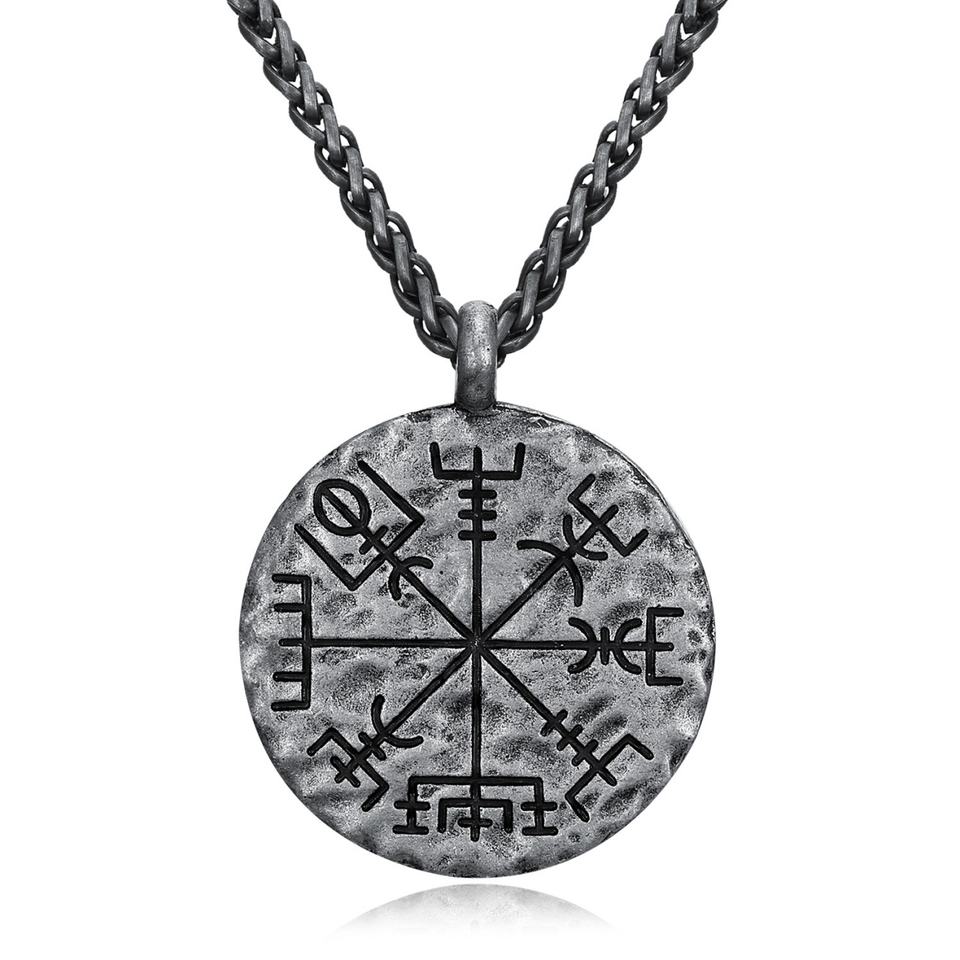 สร้อยคอเข็มทิศไวกิ้งสแตนเลสสตีลสำหรับผู้ชาย สไตล์วินเทจ ลายเรือใบและดาวเหนือ รูปทรงกลม เครื่องประดับสไตล์โจรสลัด