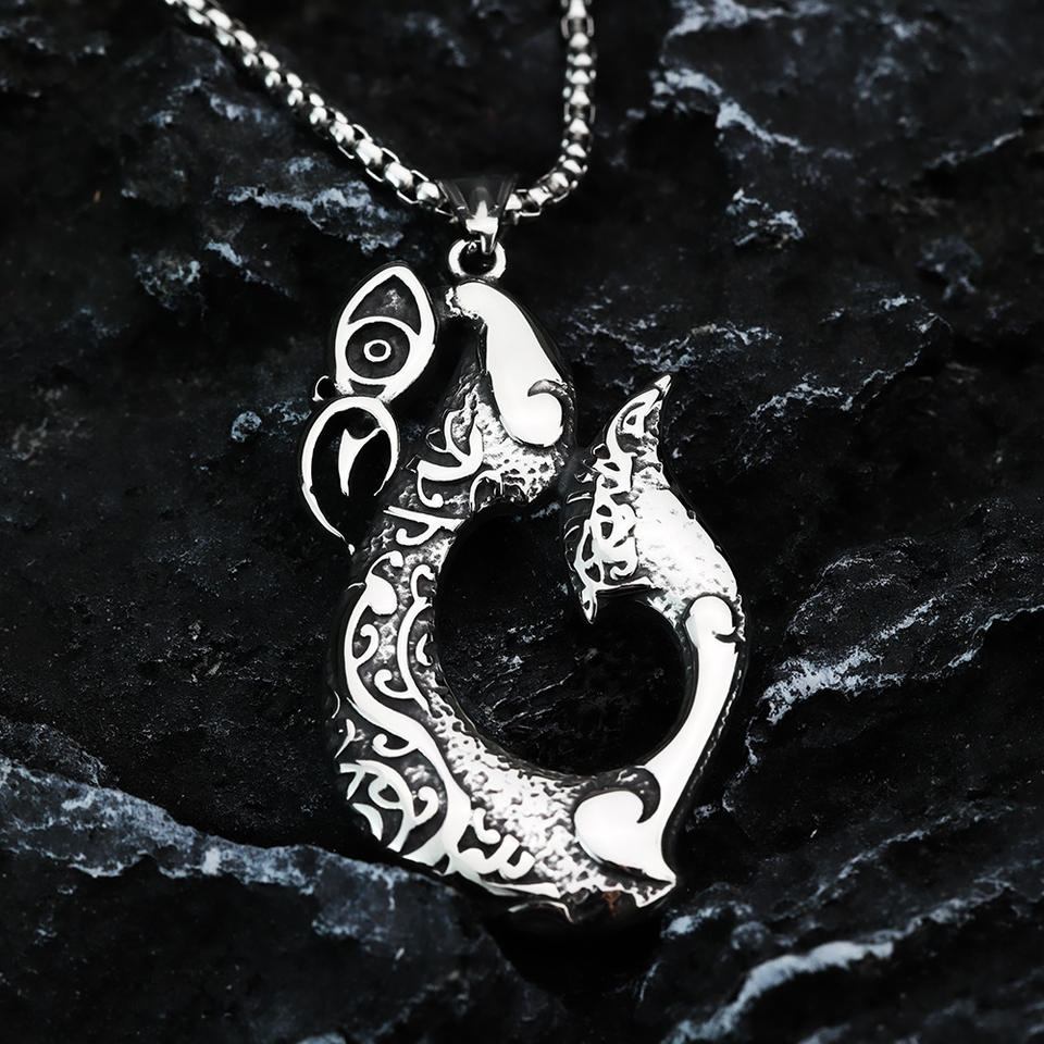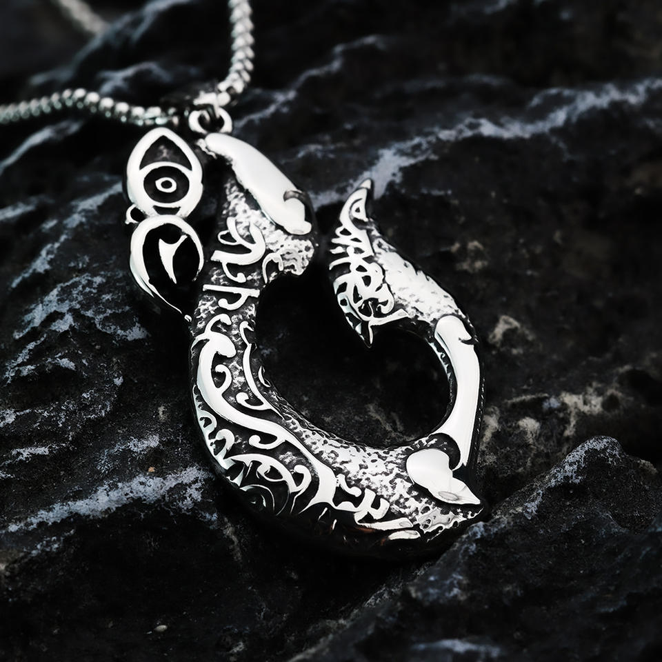Stainless Steel Viking Fishhook Pendant Men's Charm Asymmetrical Geometric Design For Clothing Matching Gift