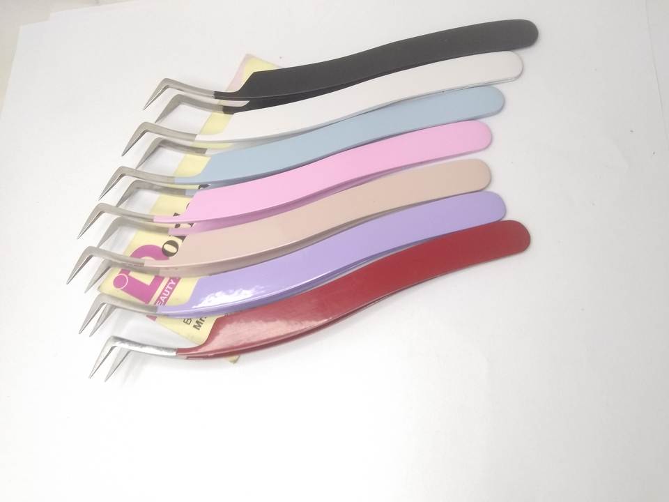 แหนบต่อขนตาสแตนเลสเคลือบสีแบบยั่งยืน รูปทรงหยัก สำหรับต่อขนตาแบบเมกะวอลุ่ม