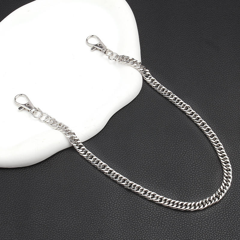 โซ่คาดเอวสแตนเลส สไตล์ฮิปฮอป พังก์ โซ่โลหะสำหรับผู้ใหญ่ โซ่คล้องกางเกงชั้นเดียว สีขาว K