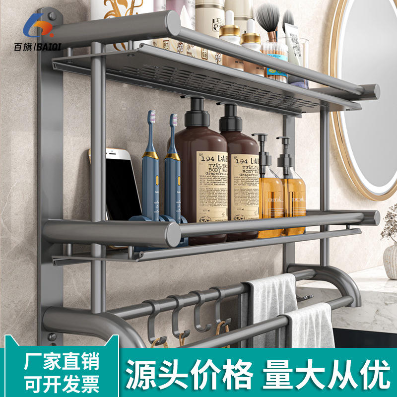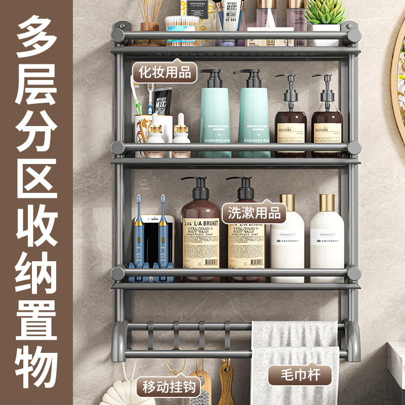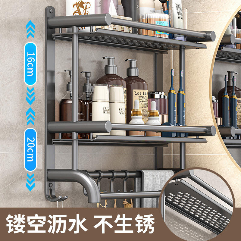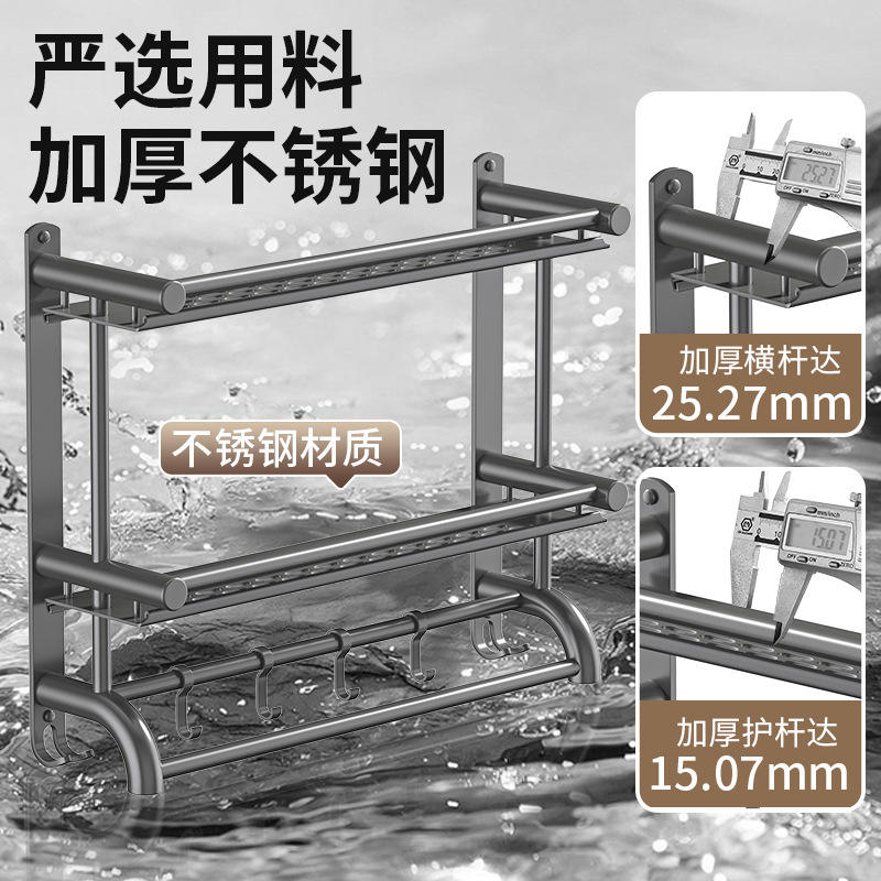 ชั้นวางของในห้องน้ำติดผนังสแตนเลสพร้อมที่วางแปรงสีฟันและราวแขวนผ้าเช็ดตัวดีไซน์เรียบง่ายทนทาน