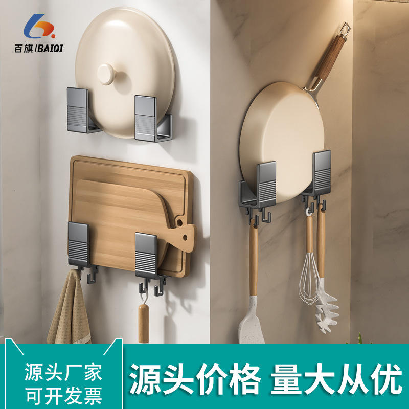 ชั้นวางฝาหม้อสแตนเลสแบบติดผนังพร้อมตะขอสำหรับจัดเก็บในครัวรูปทรงสี่เหลี่ยมผืนผ้าดีไซน์อเนกประสงค์
