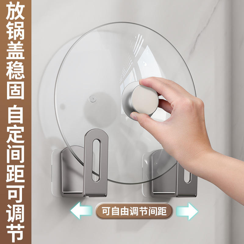 ชั้นวางฝาหม้อสแตนเลสแบบติดผนังรูปสี่เหลี่ยมผืนผ้าสำหรับเก็บหม้อและเขียงไม่ต้องเจาะ