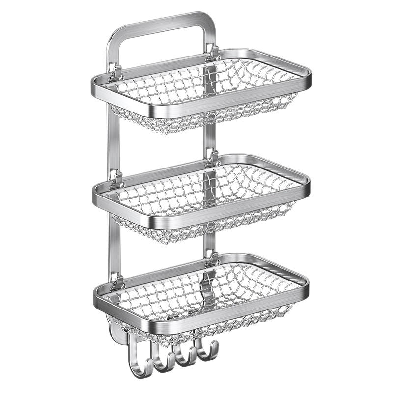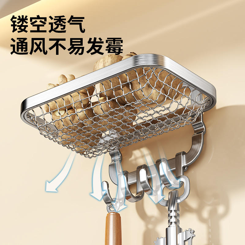 ตะกร้าเก็บของติดผนังสแตนเลสทรงสี่เหลี่ยมแบบไม่ต้องเจาะ สำหรับเก็บกระเทียม ขิง หอมหัวใหญ่ พร้อมตะขอแขวน