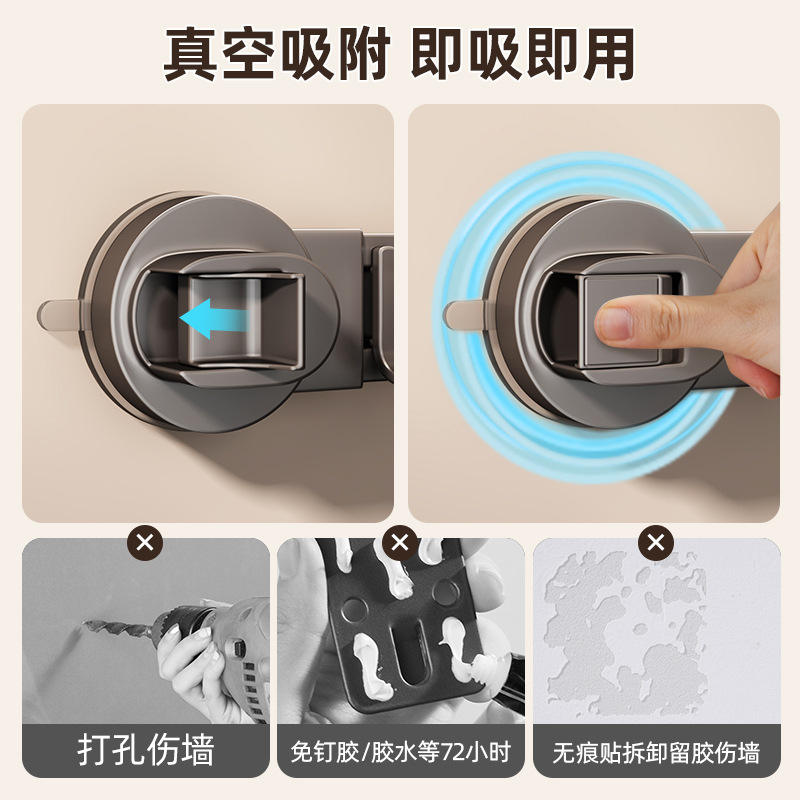 ที่แขวนไม้ถูพื้นแบบถ้วยดูด 3 คลิป 4 ตะขอ - สีเทาปืน