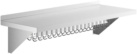 ชั้นวางของติดผนังสแตนเลส, ชั้นวางหม้อกระทะแบบหนาพร้อมตะขอ, สำหรับครัวเชิงพาณิชย์