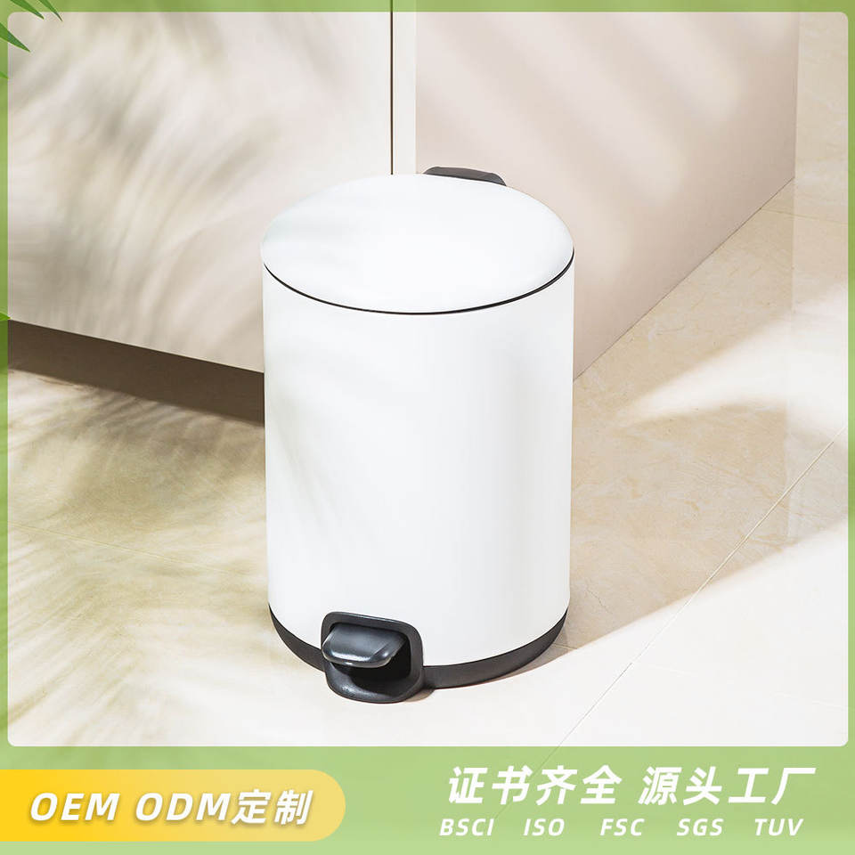 ถังขยะสแตนเลสทรงกระบอก 2 กก. แบบเหยียบ ใช้งานเงียบ สำหรับใช้ในครัว ห้องน้ำ ห้องนอน ห้องนั่งเล่น