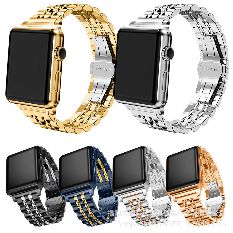 สายนาฬิกาสแตนเลสสำหรับแอปเปิ้ลวอทช์ 22 มม. สายโลหะพร้อมดีไซน์ลูกปัด ขนาด 38-45 มม. ใช้ได้กับ