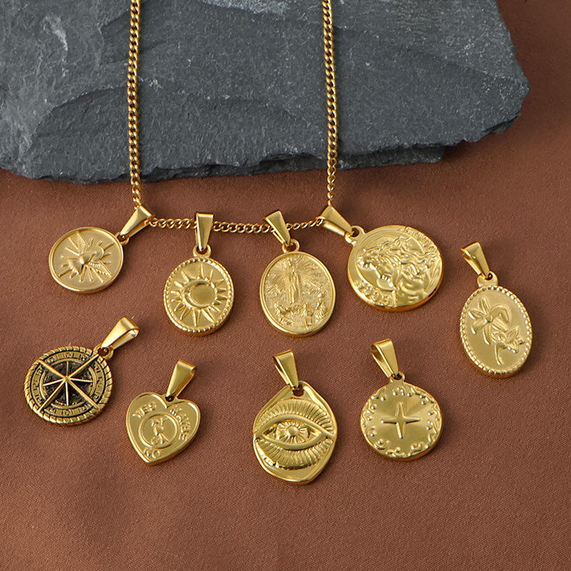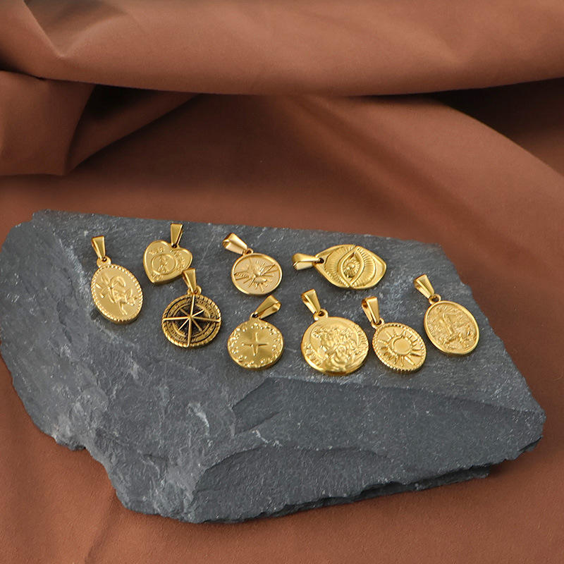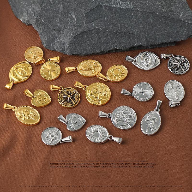สแตนเลสสตีลกันน้ำ18K ชุบทองเรขาคณิตโรมันพระแม่มารีหัวใจจี้ดอกไม้เสน่ห์ DIY ฟรีเสน่ห์อินเทรนด์ DIY