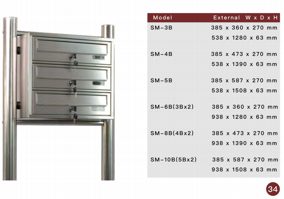 ขนาดกล่องจดหมาย:H270XW400XD362mm