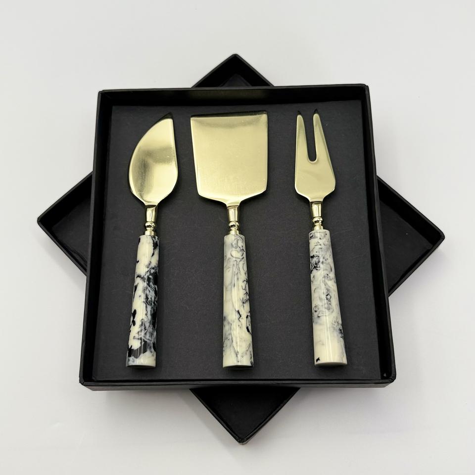 ชุดอุปกรณ์ตัดเค้กแต่งงานสแตนเลส พร้อมที่ปาดเนย มีดตัดชีส ด้ามเรซิ่น ชุดอุปกรณ์ตัดชีส