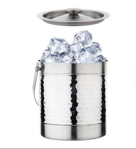 ถังแช่ไวน์สแตนเลสพร้อมฝาปิดและที่คีบน้ำแข็งขนาด1กก. บาร์ที่บ้านจำเป็นสำหรับเบียร์แช่เย็นและสำหรับแชมเปญ