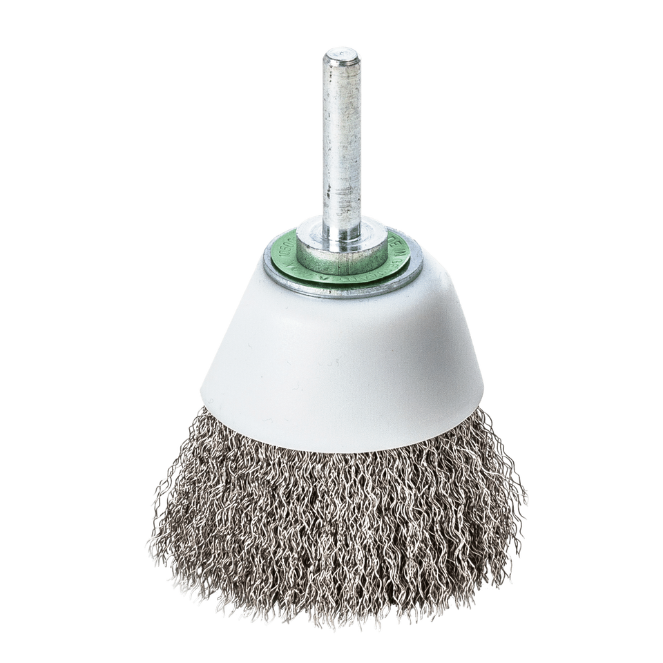 Stainless Steel Wire Polisher Surface Brushes Plastic Pot 50 mm Shaft Diameter 0.30 mm Corrugated ROF 6 X 30 mm Bristle Height