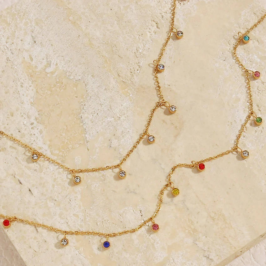 สร้อยคอสแตนเลสเซอร์คอนหลากสีหลากสีสีทองสำหรับผู้หญิง