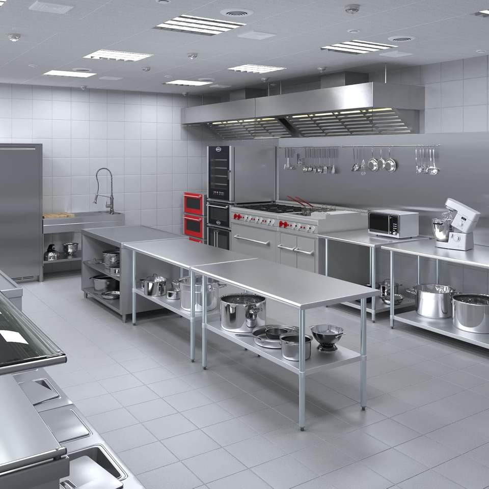 โต๊ะทำงานสแตนเลสโต๊ะเตรียมอาหารในครัวโลหะ NSF ส่งตรงจากโรงงานภาษีต่ำ