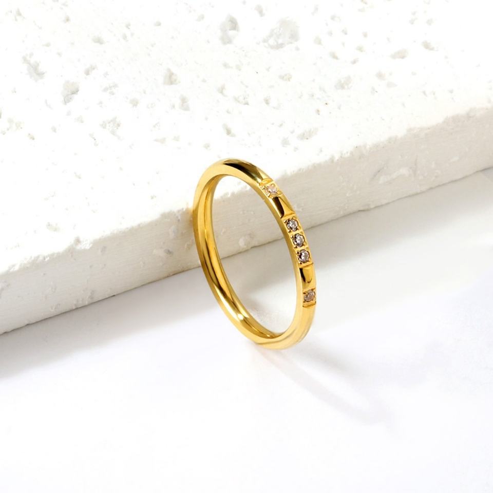 แหวนเพชรชุบทอง 18K สแตนเลสสตีลประดับเพชรซิร์คอน แฟชั่นฮิปฮอปสำหรับผู้ชาย
