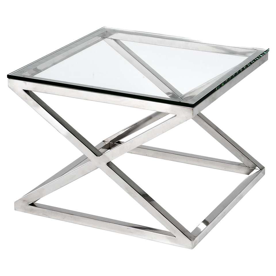 Stainless Steel Zing Zag Coffee Table for Home Decoration Silver Finished Luxury Glass Square Shape Table for Garden & Backyard